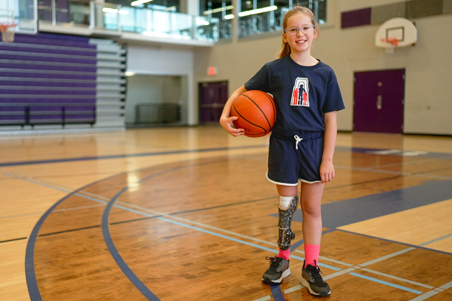 Jeanne, âgée de neuf ans, a une amputation à la jambe droite. Peu de temps après sa naissance, elle a été inscrite au Programme pour enfants amputés (LES VAINQUEURS). Dans la lettre qui accompagne les étiquettes-adresse, ses parents racontent